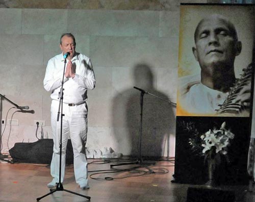 In April 2005, Sri Chinmoy had been speaking about knowing the advantages and disadvantages of knowing the meaning of his Bengali songs. Then he continued: “Among our disciple singers, I have already declared that our Adarsha from Scotland stands first. He is really the best singer. Among our singers, I declare that the best is Adarsha. Does Adarsha know the meaning of all my songs? No, no, no! But when he sings, he absolutely melts my heart. Even our World Harmony Run song — “Run, Run, Run, Run, Run, Run” — how soulfully he sings! This song is for enthusiasm, energy and dynamism. It is all dynamism, but how soulfully he sings it! When he sings my songs at Christmas time or here in New York, as soon as he starts singing, it melts my heart. Now, if we ask him what is the meaning of this word, what is the meaning of that word, he may not be able to say. But he has such a devoted feeling for the songs, and his soul’s identification with my songs is so powerful. There can be many, many qualities in one voice. Adarsha’s voice has tenderness, softness, soulfulness and power. Is he a Bengali scholar? Does he know anything about Bengali? No! But he sings so soulfully. …”