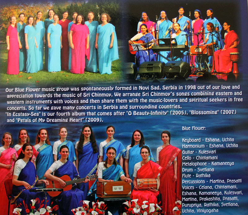 “Blue Flower music group was spontaneously formed in Novi Sad, Serbia in 1998 out of our love and appreciation towards the music of Sri Chinmoy. We arrange Sri Chinmoy’s songs combining eastern and western instruments with voices and then share them with the music-lovers and spiritual seekers in free concerts. So far we have given many concerts in Serbia and surrounding countries.”