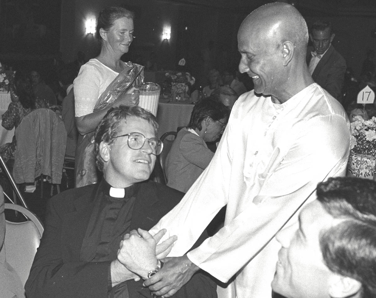 Photo from The Sri Chinmoy Tennis Classic from October 27th in 1987. Father Tom won 2nd place after Rev. Dunphy-Linnartz. It was a special tennis tournament for rabbis, priests and ministers.