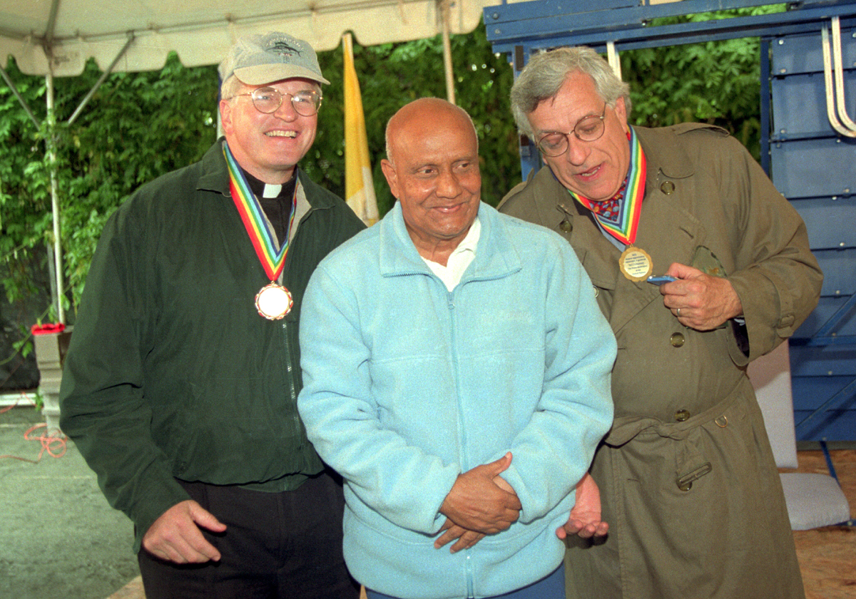 Monsignor Tomas Hartman and Rabbi Marc Gellman “The God Squad” were lifted by Sri Chinmoy in May 2001 as part of the programme ‘Lifting up the World with a Oneness-Heart‘. After being lifted, Monsignor Hartman said that the act of lifting “defies the human law of this world because he has been touched by the supernatural law of the next world. He is for us a model.”