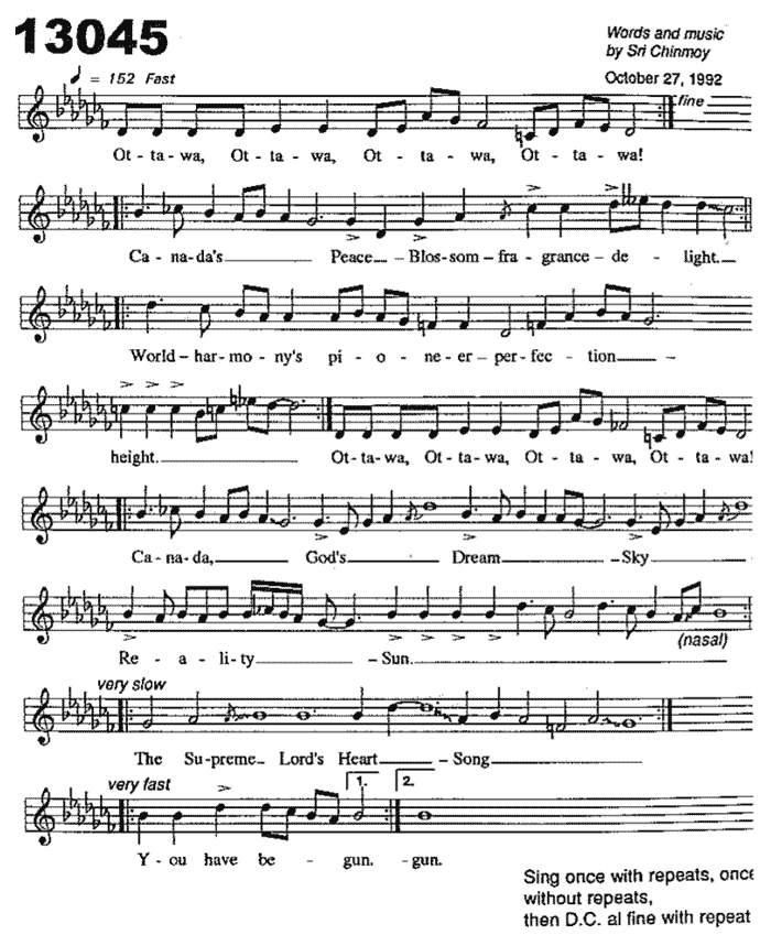 Song dedicated to the city of Ottawa. Ottawa was where Sri Chinmoy began his painting journey in 1974.