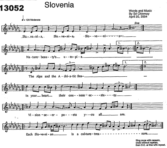 A song dedicated to Slovenia. Sri Chinmoy travelled there in 2004 as part of celebrations to mark the country’s entry into the European Union