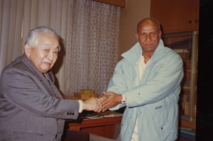 Japan’s revered Guru of running, Kiyoshi Nakamura, met with America’s running Guru on December 21, and the two found they had a lot in common. The 67-year-old Japanese coach, whose running philosophy has influenced a whole generation of Japanese athletes, including his most famous student -Boston Marathon winner Toshihiko Seko – has transformed running into a spiritual discipline. “Our aim is to combine the body and the spirit,” he told Sri Chinmoy. “I tell my runners before the start of each race, ‘Remember, do your best and give the result to God’s Hand.’ ” Sri Chinmoy encourages his students to express their spirituality, among other ways, through running and is also a runner himself. Nakamura and Sri Chinmoy met in Tokyo’s Jingu Gaien Park. During the meeting, the Sri Chinmoy singers sang a song to Nakamura, which the Master had written in the Japanese coach’s honour. They discussed their respective running philosophies, and Nakamura expressed surprise that Sri Chinmoy’s spiritual philosophy, as practised in America, was as strict as his own. “The idea that this very philosophy is being practised in New York is truly awesome,” Nakamura told Sri Chinmoy. “It comes down to the fact that the world is very small.”