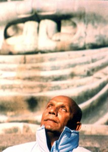 1982 – Sri Chinmoy meditates in front of the great Buddha statue at Kamakura, Japan, on December 20, 1982. The Master was so moved by his experience there that he composed a song about the Buddha and asked his disciples to sing it, with folded hands, in front of the shrine.