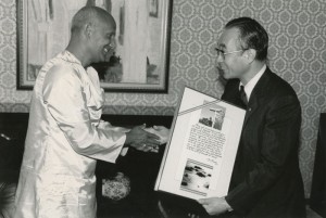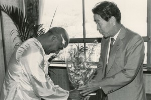 Sri Chinmoy said: “It is because you have a beautiful flower inside yourself that you are able to see and feel the flower in others.” Deeply moved by his meeting with Sri Chinmoy, Nakamura came by the spiritual teacher’s hotel the following day, bringing gifts to Sri Chinmoy and his students. “It is most fortunate for the world that there is someone like Sri Chinmoy here,” he declared.