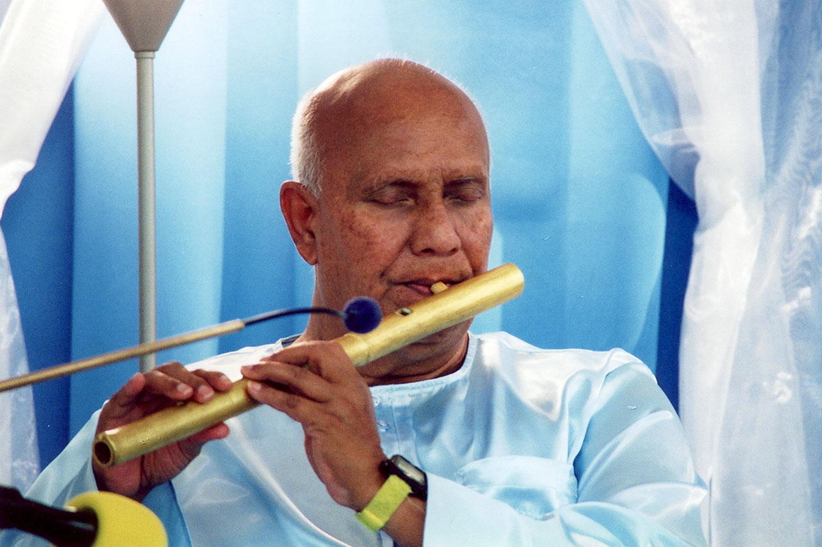 Uma tapeçaria meditativa da palavra falada, da música e do canto de Sri Chinmoy