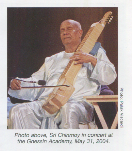 “In June 2006, Sri Chinmoy received a recording from Russian composer Valery Piankov. It contained a performance of Piankov’s ‘Opus 51, Spiritual Hymns’- intricate arrangements of a dozen of Sri Chinmoy’s songs, expertly sung by an unaccompanied mixed choir conducted by Lev Kontorovich. The recording was made a month earlier at the Gnessin Russian Academy of Music in Moscow, where Piankov was professor of music composition, and where Sri Chinmoy himself had performed two years earlier.”