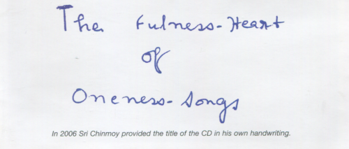 “Upon listening to the recording, Sri Chinmoy said that both the choral arrangements and the singers pleased him to an unprecedented degree. He then made an admittedly uncharacteristic remark: he said that Piankov’s achievement would remain unparalleled. He immediately made a thousand copies of the recording for his disciples, withholding two of the compositions for revision, and named the CD The Fulness-Heart of Oneness-Songs. The Sri Chinmoy Centre in Moscow also produced the CD; in addition, they published a songbook containing the ten arrangements.”